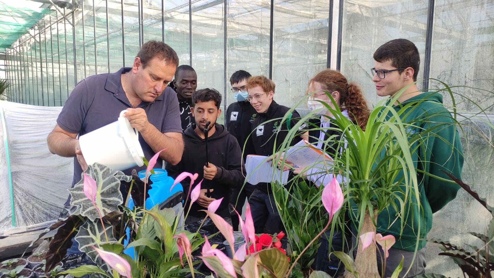 La semaine dernière, les CAPa Métiers de l’Agriculture 2e année ont réalisé un essai en appliquant de la chlorelle sur les plantes afin d’évaluer son effet protecteur contre le risque d’oïdium