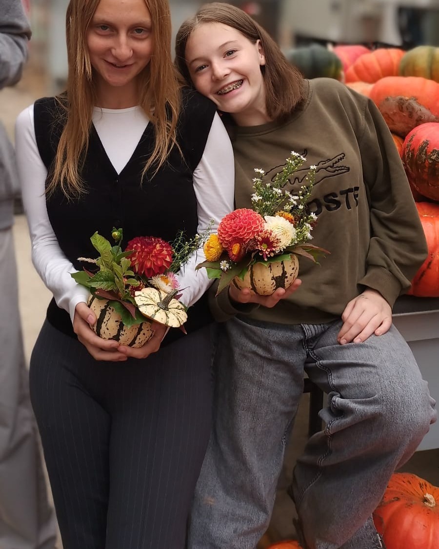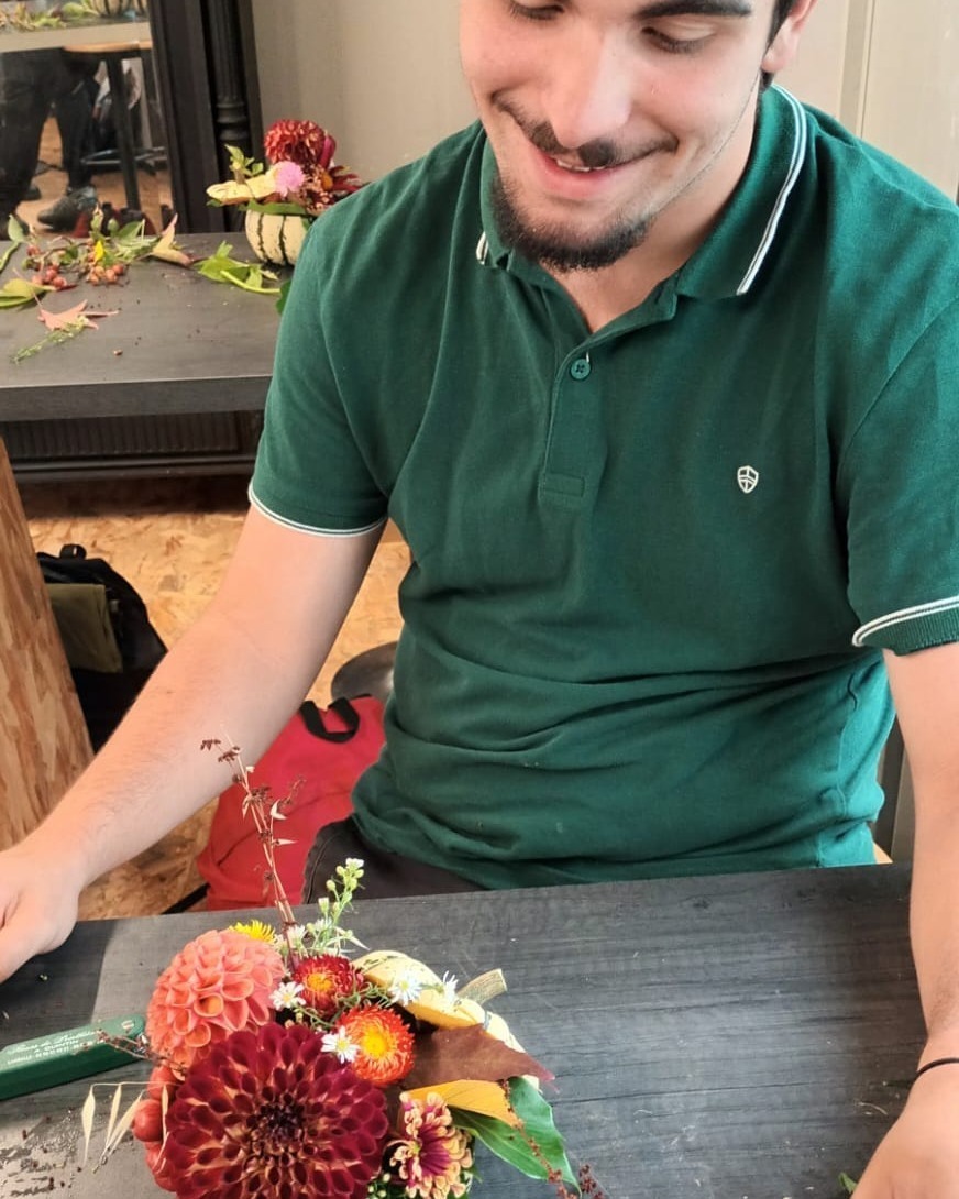 Les élèves de CAP 1ʳᵉ année Métiers de l’Agriculture ont laissé exprimer leur créativité lors d’un atelier d’initiation aux compositions piquées automnales ✨ Bravo à eux pour ces premières réalisations hautes en couleurs !