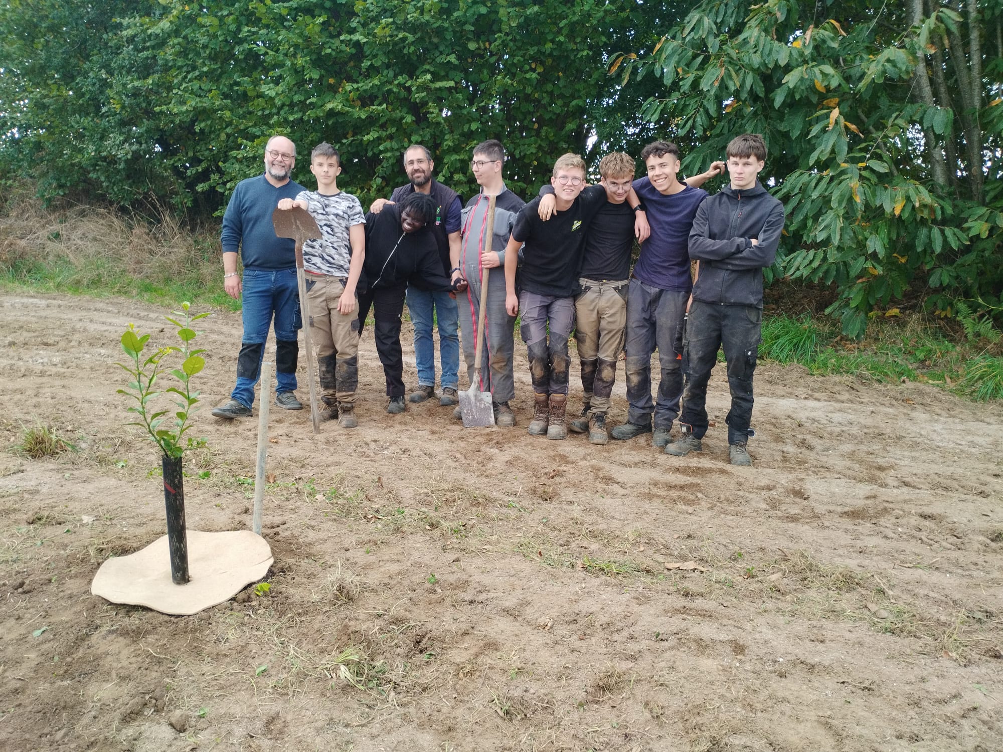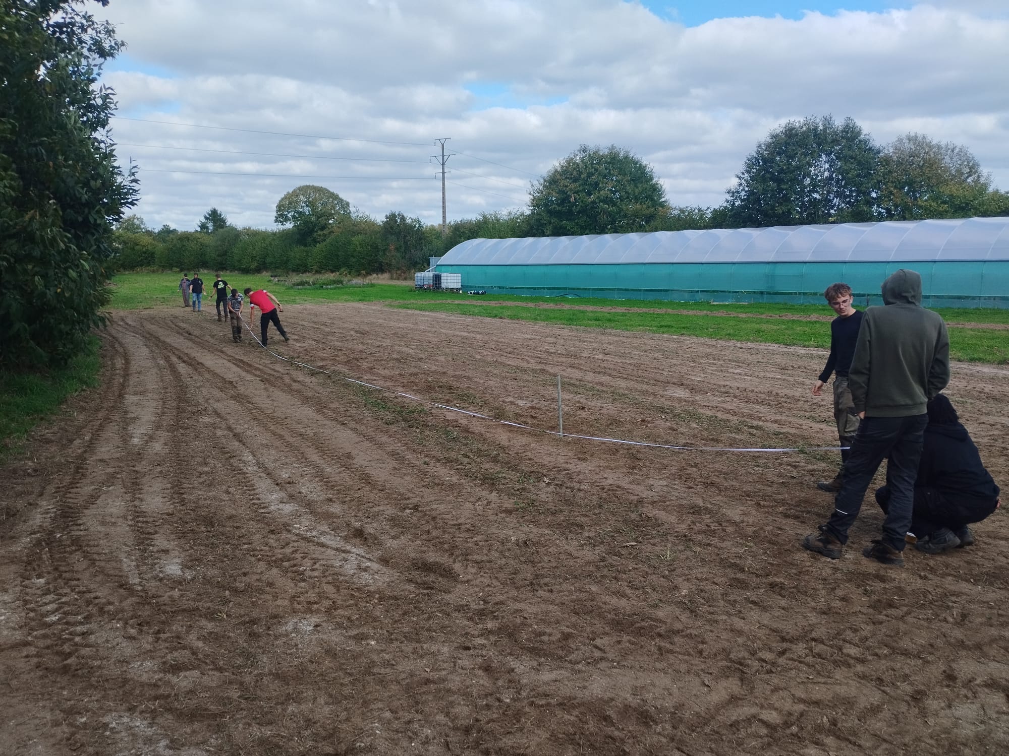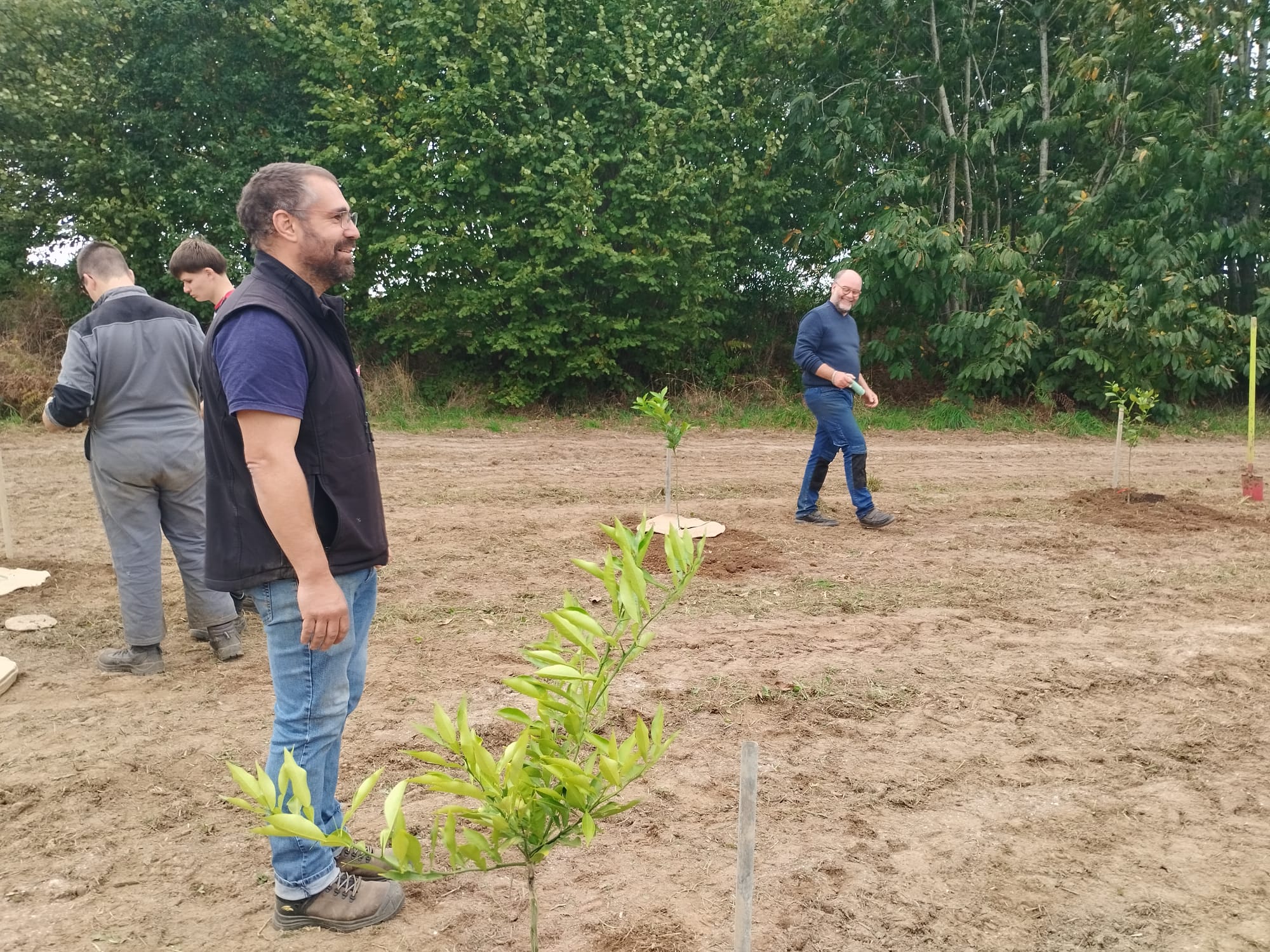 Chantier de plantation d’agrumes pour les élèves de 1ʳᵉ Bac Pro Productions Horticoles chez Bruno Monchâtre à Ploumagoar. C'est l’occasion de perfectionner les gestes techniques et d’en apprendre plus sur la culture des agrumes