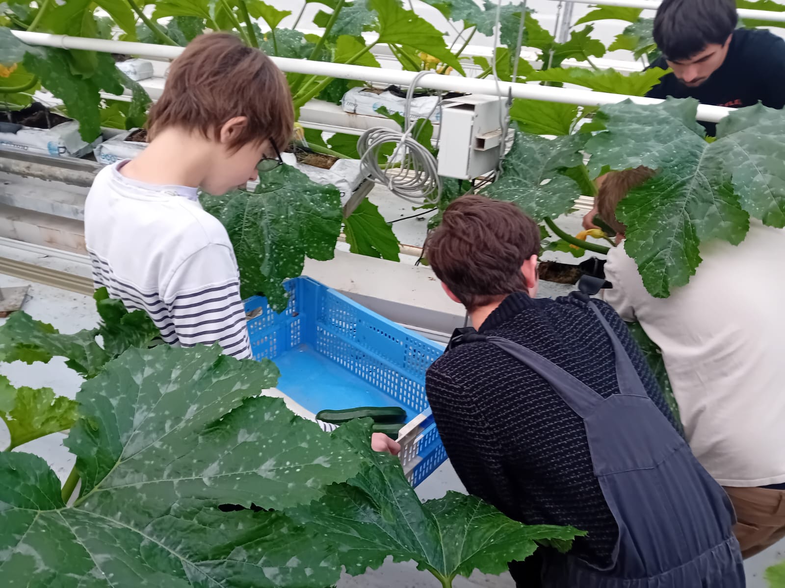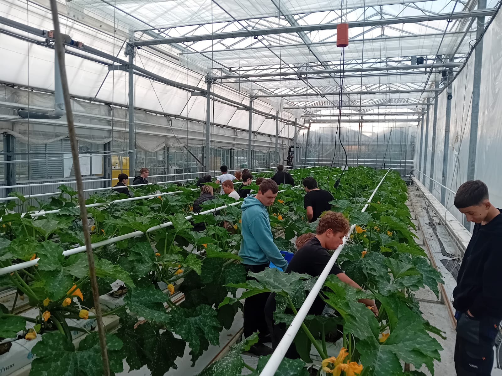Récolte de courgettes sous serres, pour les CAPA 1ʳᵉ année Métiers de l’Agriculture !