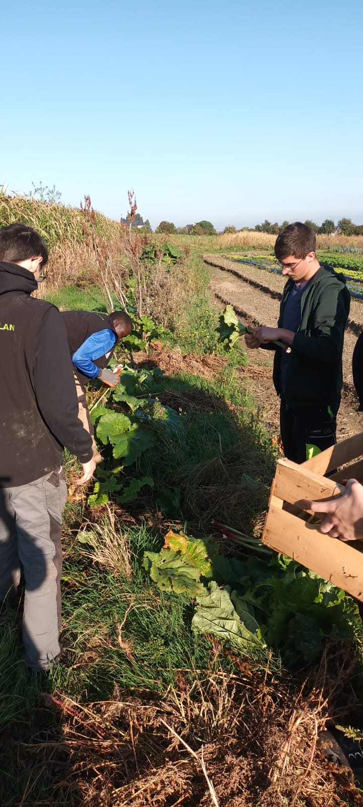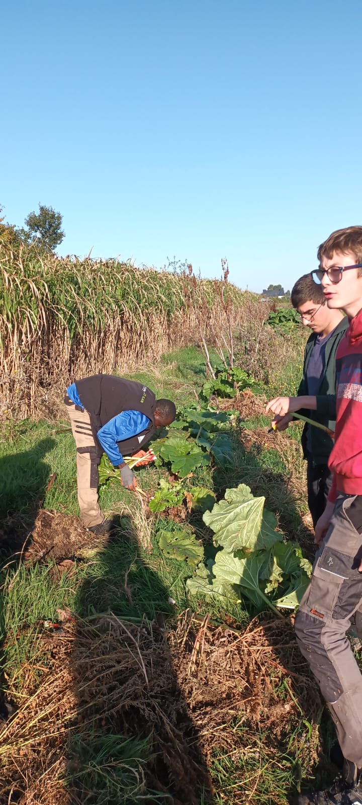 Récolte de rhubarbe ! Bravo aux élèves de CAP 2 Métiers de l’Agriculture qui ont récolté de belles rhubarbes fraîches… prêtes à garnir les rayons du petit marché de Saint Ilan de demain !